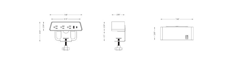 This compact power module offers 3 AC outlets, 1 USB, and 1 USB-C port with 65W of power. Featuring a 6ft cord and a C-clamo for easy desk mounting, it also include wireless charging on top for added conveniene, It’s a sleek and efficient solution for powering your devices.